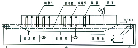 工藝流程:上料→噴淋清洗→噴淋漂洗→風干→熱風烘干→下料